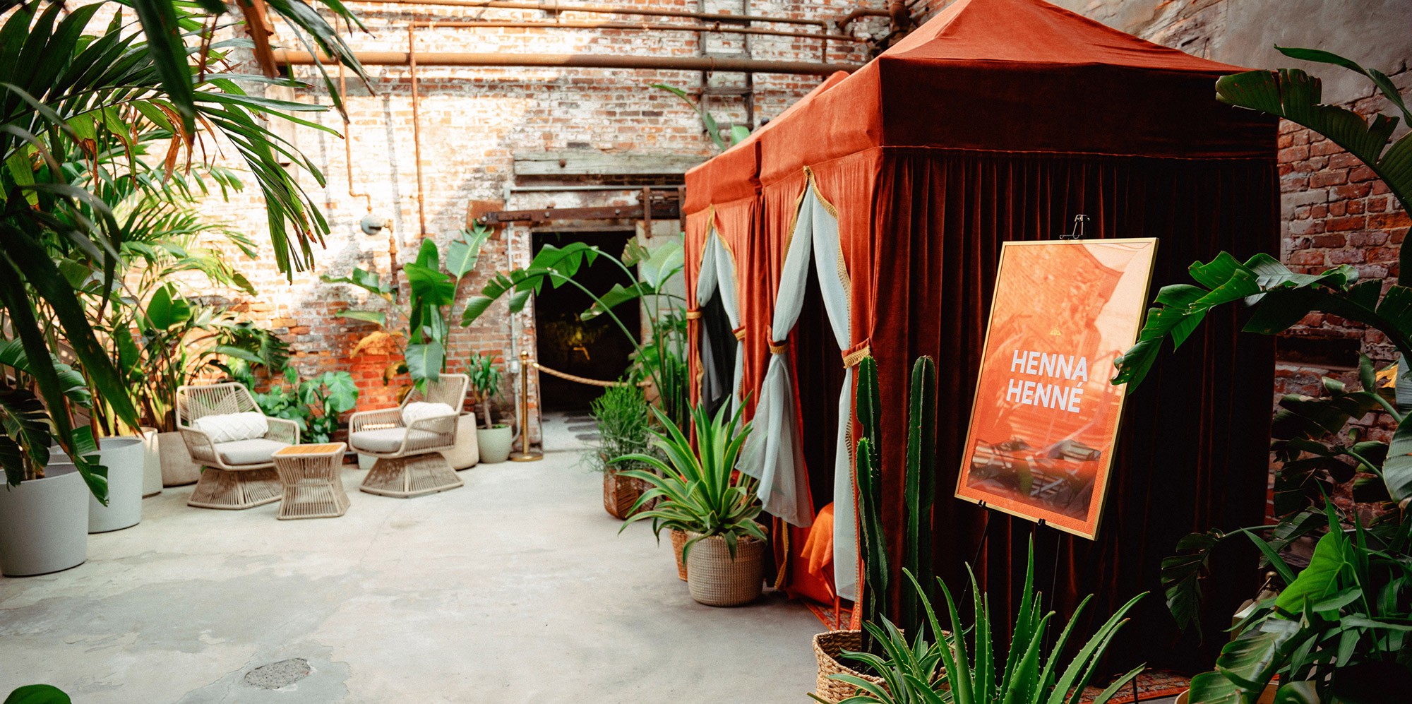 Les tentes constituaient l'élément central de cette soirée expérientielle. Nous avons développé quatre tentes colorées décorées dans un style marocain, avec tapis traditionnels, lanternes et plantes exotiques. Chaque cocon abritait des ateliers de henné, de tarot et de chiromancie.